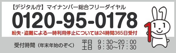 一部IP電話等でフリーダイヤルにつながらない場合など、詳しくは(マイナンバーカード総合サイト)お電話でのお問い合わせをご確認ください。